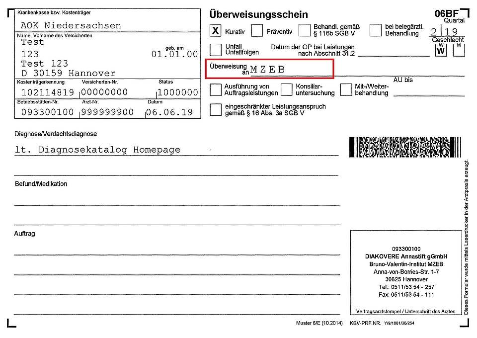 Das MZEB arbeitet mit allen Krankenkassen zusammen.