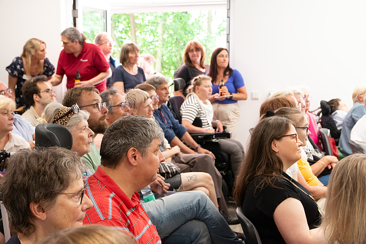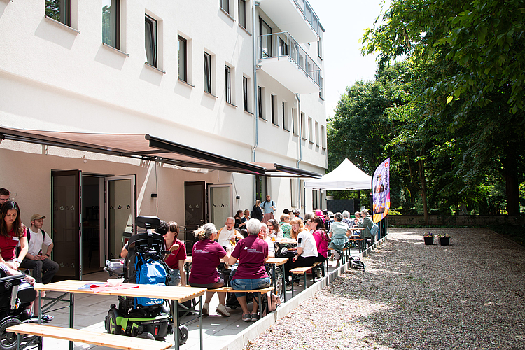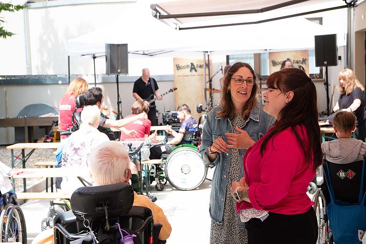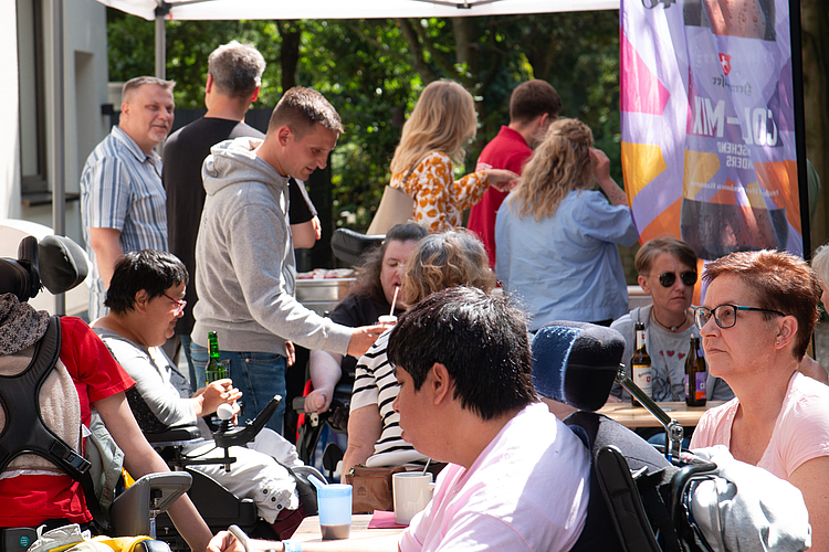 Von Anfang an war richtig was los: Schon ab 13.00 Uhr kamen zahlreiche Besucher*innen, Angehörige, Nachbar*innen und Interessierte, um die neuen Räume kennenzulernen. Bei Führungen, kreativen Mitmachaktionen und netten Gesprächen auf der Terrasse konnte man einen lebendigen Eindruck vom neuen Standort bekommen. Besonders beliebt: das Holz-Mosaik, auf dem sich viele Gäste kreativ verewigt haben, und die Kreativwerkstatt mit handgemachten Grußkarten. Für Stimmung sorgte die inklusive Band Boom-a-Rank, die auf der Gartenterrasse ordentlich einheizte und viele Gäste zum Mitwippen brachte.