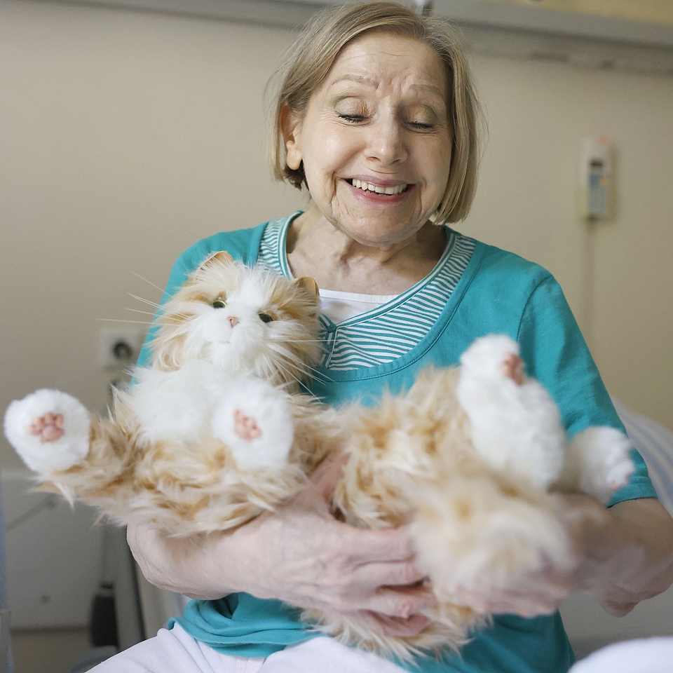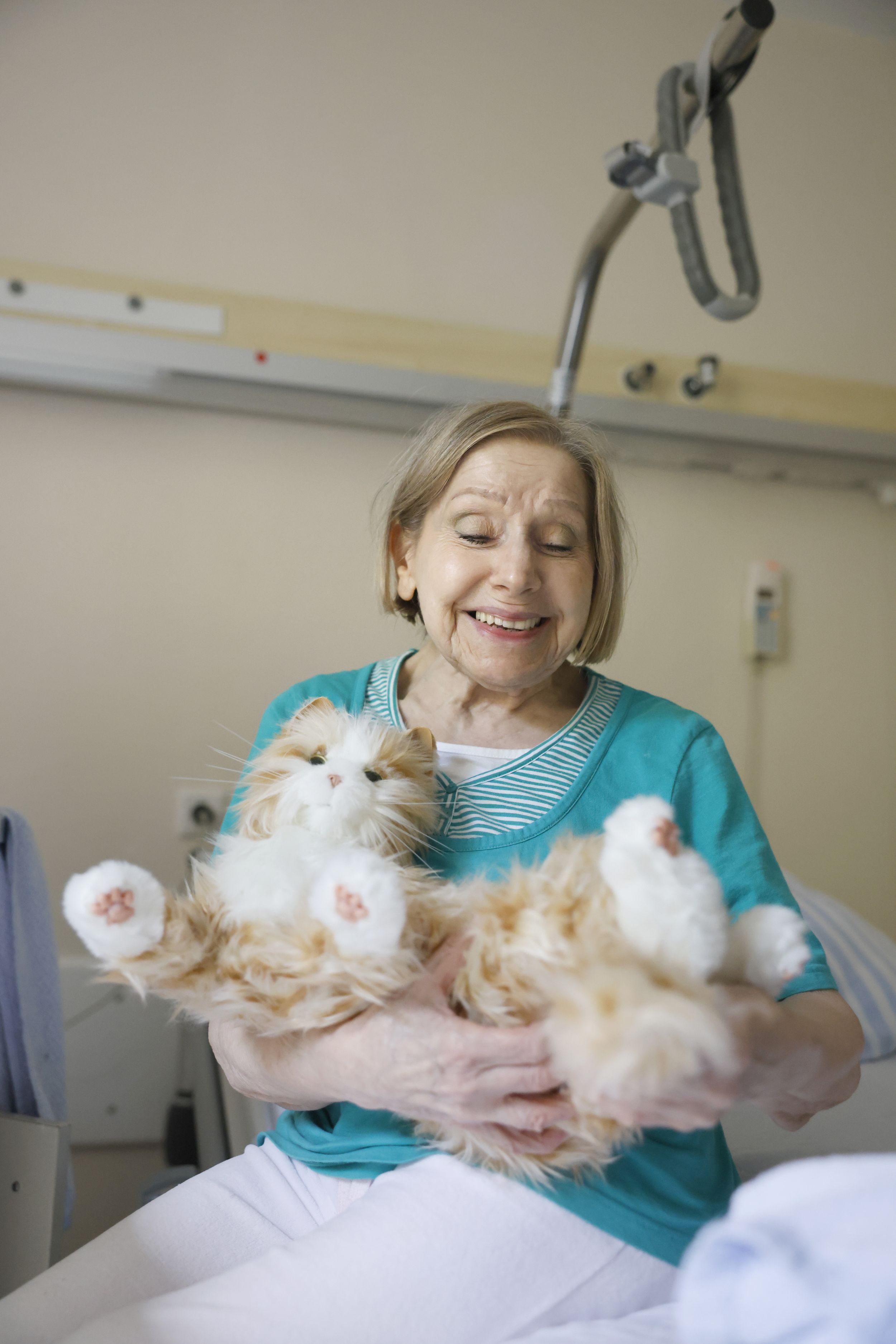 Für eine gute Versorgung sind vielfältige Therapie- und Hilfsmittel nötig. Dazu zählen zum Beispiel „Robotertiere“, die auf Berührung reagieren. „Gerade bei verwirrten Patientinnen und Patienten zeigen sich damit beeindruckende Erfolge“, sagt Chefarzt Professor Krause.